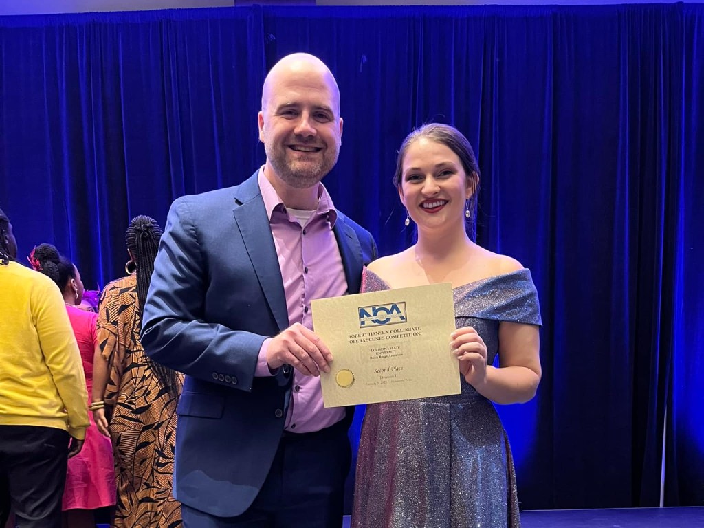 Congratulations to LSU Opera and our own Scott and Karli for placing second in Division II of the National Opera Association 2023 Robert Hansen Collegiate Opera Scenes Competition.